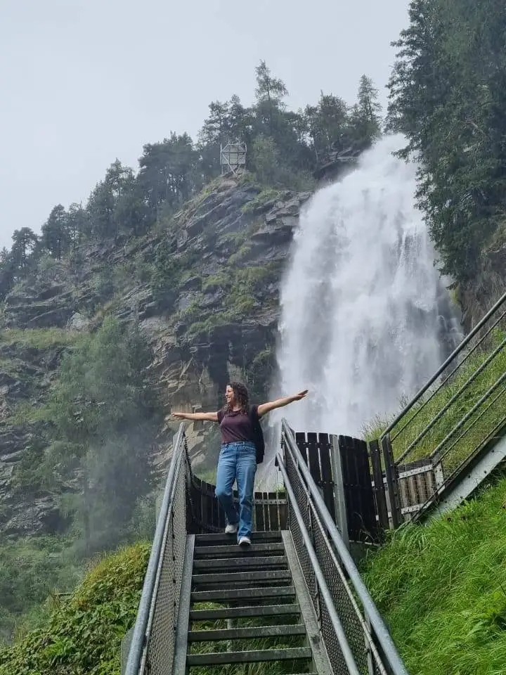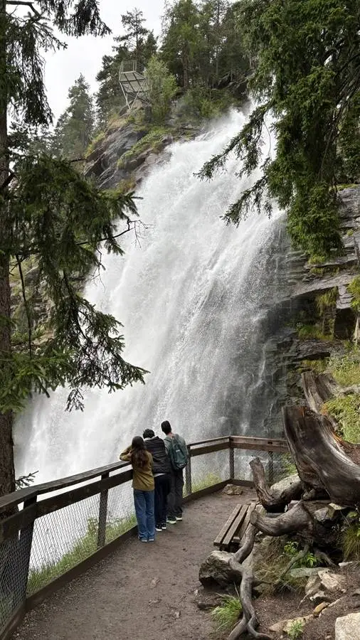 אנחנו בחרנו להתחיל מלמעלה. אחרי הליכה קצרה כבר הגענו לפלטפורמה הראשונה שצופה על המפל השוצף. מזג האוויר הסגרירי הוסיף קסם למקום וגם היה נעים ולא חם מידי. אחת הפלטפורמות נבנתה ממש מתחת למפל והיינו חייבים לבדוק איך מרגיש המפל מקרוב. חוויה משעשעת ורטובה. כשהגענו למטה נשארנו קצת לצפות במפלים הנופלים מגובה רב ואז התחלנו לטפס בחזרה למעלה. הירידה והעלייה לקחו לנו כשעה וחצי- שעתיים עם עצירות. אין ספק שהמדרגות רבות וזה דורש מאמץ וכושר סביר, אבל זה כל כך שווה את זה. מפה החלטנו לצאת לתצפית Höfler Aussichtsplattform היפה היוצאת מהכפר. חנינו בחניה במרכז הכפר והתחלנו לצעוד על הכביש. ההגעה לתצפית היא בהליכה קצרה ממרכז הכפר על כביש אספלט. גם הדרך עצמה יפהפיה ומספקת נוף משגע של העמק וההרים מסביב.