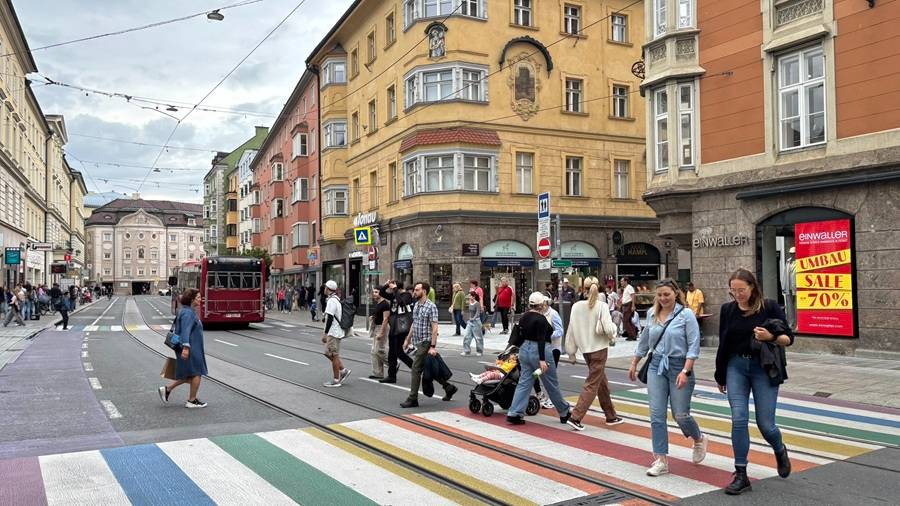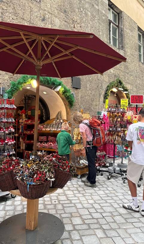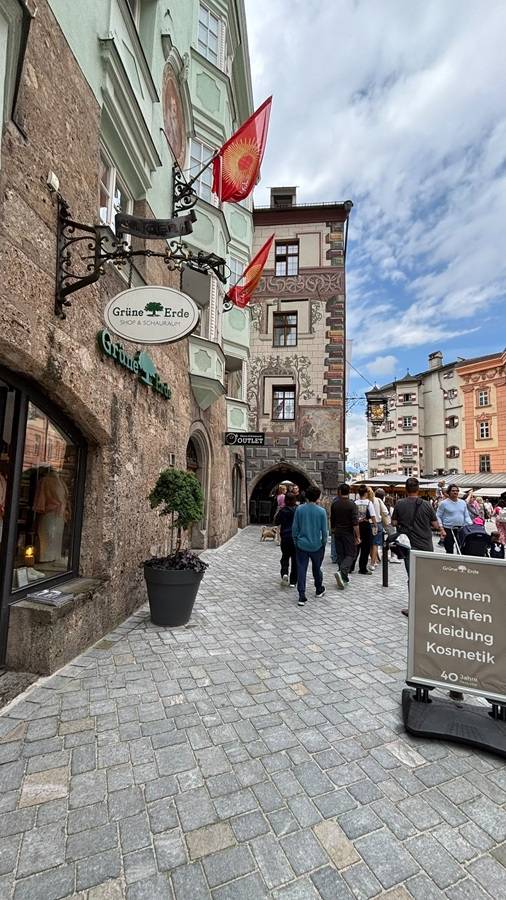 אחרי שגלשנו ונהננו, המשכנו ליעד הבא: עיר הבירה של חבל טירול: אינסברוק. חנינו בחניון קרוב למרכז, ותוך שתי דקות הגענו לרחובות הצבעוניים והתוססים של העיר. בכפרים והעיירות הקטנות ובוודאי בטיולים בטבע, רוב הזמן לא היה עומס בכלל, הכל מאוד רגוע ושקט. באינסברוק לעומת זאת היו המון תיירים. זה לא הפריע לנו בכלל, להיפך זה היה שינוי נחמד. עברנו ליד גג הזהב, אתר מפורסם בעיר. חצינו את הסמטאות והרחובות המרוצפים ומלאי חנויות מזכרות, בתי קפה מסעדות ומטיילים. הגענו לגשר על הנהר, עם הבתים הצבעוניים המקסימים שהם סימן ההיכר של העיר. אחרי צילומים ושיטוטים, יצאנו לחנויות ספרים שהמתבגר ביקש לבקר בהם. עברנו במדרחוב מריה תרזה שטרסה שוקק האנשים. לבסוף אחרי קצת שופינג יצאנו למסעדה איטלקית מעט מחוץ למרכז. יש בעיר עוד המון דברים להספיק ולראות, אבל אחרי כמה שעות המשכנו הלאה, לכיוון מקום הלינה החדש בדולומיטים.