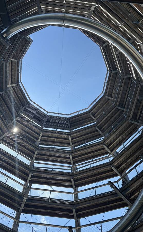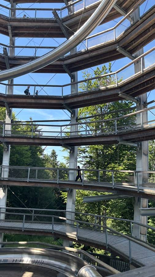 עצירה ראשונה בדרך הארוכה שלנו לחבל טירול: מסלול צמרות העצים Baumwipfelpfad Salzkammergut ליד אגם טראונזה. אל מסלול צמרות העצים עולים ברכבל מהעיירה גמונדן Gmunden. למעלה על ההר כמה מסלולי טיול, רכבת הרים חביבה, ומסלול צמרות העצים היפהפה. תמצאו שם גם מסעדה המגישה אוכל פשוט וטעים ומגרש משחקים. המסלול כולל לוחות מידע, הפעלות חמודות לילדים ותצפיות נוף משגעות המשקיפות על האגם והנוף מסביב. בסופו תגיעו למגדל תצפית מקסים. לפני שאתם עולים הכינו מעט כסף מזומן וקחו איתכם שטיחון אותו תמצאו למטה. עם השטיחון הזה תוכלו לגלוש חזרה למטה במגלשת צינור חביבה. כמובן תוכלו גם לרדת חזרה ברגל אם אינכם הרפתקנים.