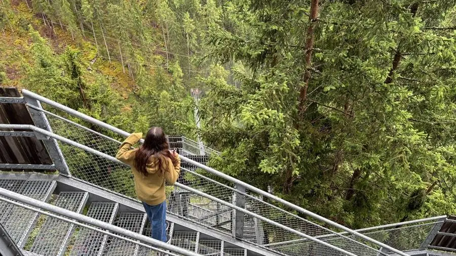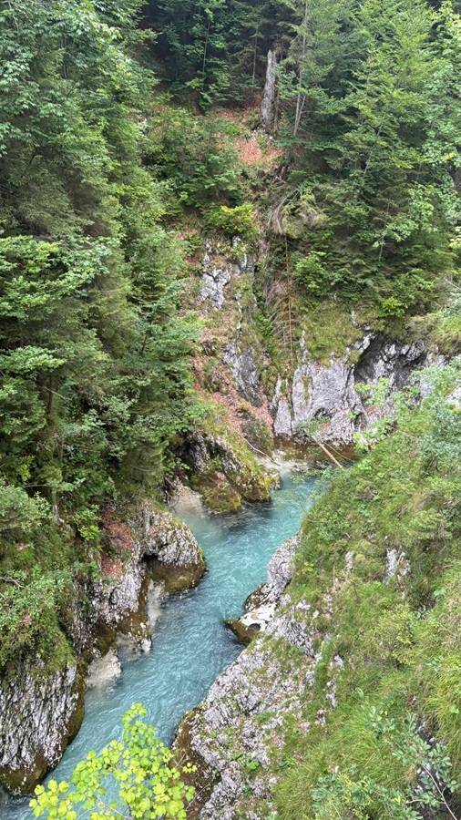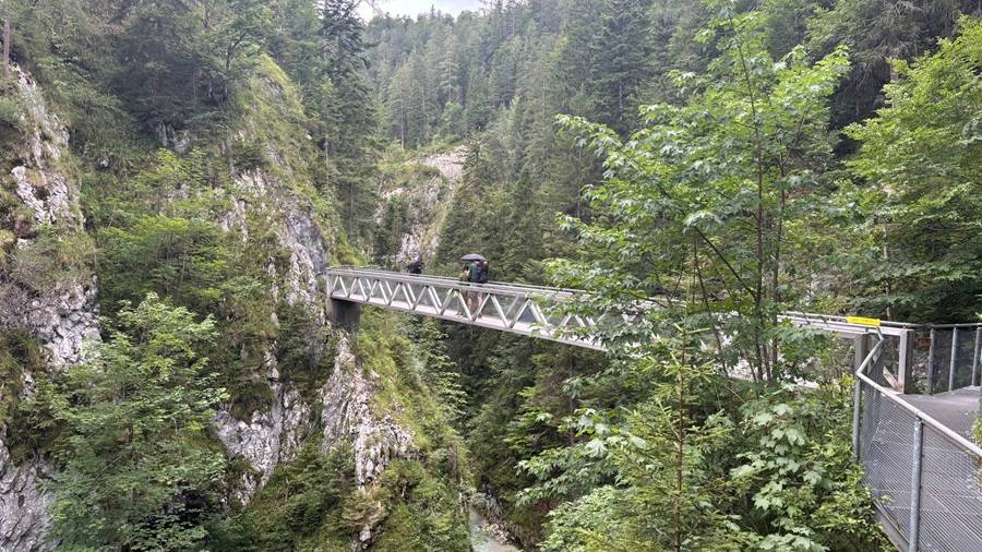 צעדנו על גשרוני המתכת הבנויים ממש על דפנות הנקיק ומעל למים השוצפים בצבע תכלת תורכיז יפהפה. כשהגענו לגשר הפנורמי המקשר בין שני צידי הנקיק הגשם אכן התחיל להתגבר. החלטנו לא להמשיך לצעוד לצד הגרמני ולמפל שנמצא בהמשך המסלול. חצינו את הגשר והתחלנו לצעוד ביער בחזרה לחניה. אחרי כמה דקות כבר ירד גשם של ממש. זו היתה חוויה והמתבגרים החמודים אפילו נהנו ממנה ממש. זה היה בהחלט משעשע. עכשיו בכנות: אני יודעת שהמסלול מאוד מפורסם והנקיק אכן יפה, אבל בעיני יש באוסטריה נקודות יפות ומרשימות בהרבה. יחד עם זאת זה היה מסלול שסגר פינה והתאים לנו בול באותו יום, גם עם הגשם.