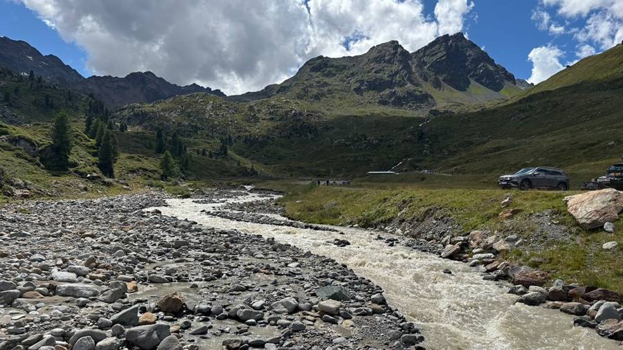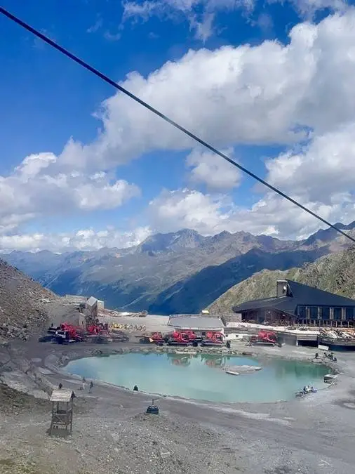 היות ואנחנו מתחילים את היום מאוחר, הגענו לתחילת הדרך סביב 11:00 ולכן החלטנו לעשות את המסלול בכיוון ההפוך. נסענו עד לתחנה האחרונה תחנה מספר 34 ממנה עולים ברכבל לקרחון. הרכבל נסגר בשעה 16:00 ולא רצינו לטייל בלחץ. עשינו עצירה אחת ליד תחנה מספר 9: הסכר והאגם עם מיי הטורכיז המהפנטים. צילמתי אינסוף תמונות תוך התלהבות מהנוף המטורף שהקיף אותנו. משם המשכנו לתחנה האחרונה. עלינו ברכבל למעלה. אם אין לכם כרטיס קיץ הרכבל לא זול. ממליצה לעלות למעלה רק אם מדובר ביום יפה ובהיר. הנוף מלמעלה מקסים ויש סימון נחמד של הגבול בין אוסטריה לאיטליה. אטרקציה חביבה.
