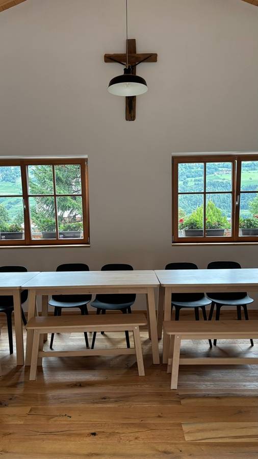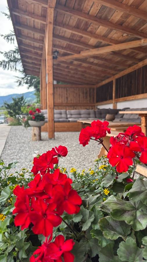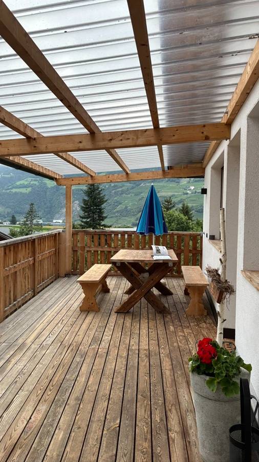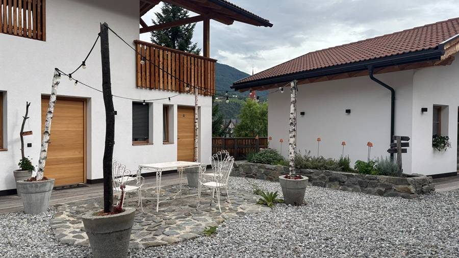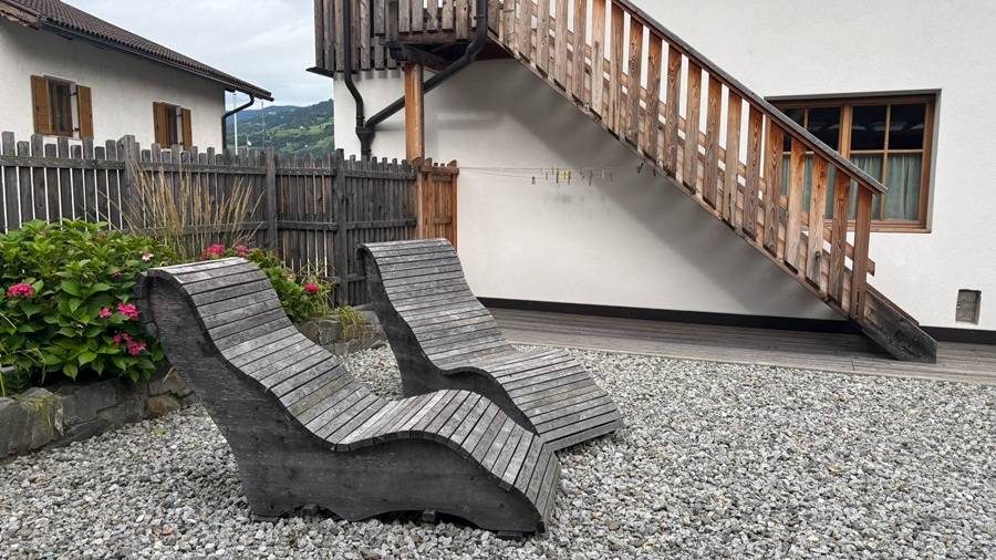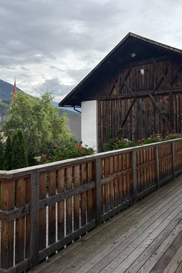 בשעות הערב הגענו לחווה המקסימה ליד ברסנונה. אקדים ואומר שהייתי ממש בלחץ לגבי מקום הלינה הזה. הוא היה נראה נהדר בתמונות, אבל חששתי מאוד שיהיה חם מידי ביולי. בפועל היה נעים מאוד (אולי זה עניין של מזל). בכל אופן התאהבתי מיד. הדירה ממוקמת בתוך חווה קטנה ומתוקה בבעלות של זוג צעיר ומקסים. וולפגנג הבעל מתחזק את החווה והדירות היפות והמעוצבות והחצר היפהפיה. יש במתחם שלוש דירות והוא כולל חצר מקסימה עם פינות ישיבה, חדר אוכל משותף ובו מטבח ופינת אוכל עם חלונות לנוף המשגע מסביב. עוד בשטח החווה: מדשאה ענקית עם כסאות נוח למנוחה, חממה, מטעי תפוחים ובריכת נוי. הכל מעוצב יפה ויש השקעה בכל פרט. הדירה שלנו בקומה השנייה כללה שני חדרי שינה, מטבח, פינת אוכל וסלון, ומרפסת נוף משגעת.